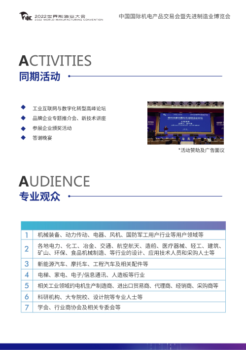 1.工業互聯網與數字化轉型高峰論壇 2.品牌企業專題推介會、新技術講座 3.參展企業頒獎活動 4.答謝晚宴