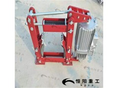電力液壓塊式制動器就是使機械中的運動件停止或減速的機械零件。俗稱剎車、閘。制動器主要由制架、制動件和操縱裝置等組成。有些制動器還裝有制動件間隙的自動調整裝置。為了減小制動力矩和結構寸, 制動器通常裝在設備的高速軸上,但對安全性要求較高的大型設備(如礦井提升機、電梯等)則應裝在靠近設備工作部分的低速軸上。有些制動器已標準化和系列化,并由專業工廠制造以供選用。塊式制動器是靠制動塊壓緊在制動輪上實現制動的制動器。單個制動塊對制動輪軸壓力大而不勻,故通常多用一對制動塊,使制動輪軸上所受制動塊的壓力抵消。鼓式制動器YWZ5系列 售后完善