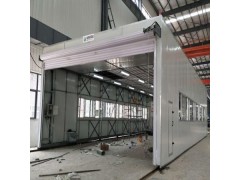 整體移動式噴漆間的設計目的,是為了滿足較大型工件 打磨或噴漆的需要。一般情況下每套房體對應2~3個排風凈化工位,哪個工位上的工件需要噴漆時,房體則行走移動到那個工位,其他工位可以繼續打磨工作,待 房體內的工件噴漆完畢后,再控制移動房體行走到打磨完畢后的工件工位,如此設計可以實現大型工件的不間斷連續噴漆工作。房體為鋼結構構造,房體立柱下面設置有兩臺電動驅動行走機構,行走機構沿地面軌道行走。移動房體兩端設置有電動卷簾大門,房體行走時,大門升起,待到達指定位置時,大門降落關閉。大門與行走機構由電氣控制部分連鎖控制,大門完全升起后,房體才可移動行走。