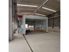 整體移動式噴漆間的設計目的,是為了滿足較大型工件 打磨或噴漆的需要。一般情況下每套房體對應2~3個排風凈化工位,哪個工位上的工件需要噴漆時,房體則行走移動到那個工位,其他工位可以繼續打磨工作,待 房體內的工件噴漆完畢后,再控制移動房體行走到打磨完畢后的工件工位,如此設計可以實現大型工件的不間斷連續噴漆工作。房體為鋼結構構造,房體立柱下面設置有兩臺電動驅動行走機構,行走機構沿地面軌道行走。移動房體兩端設置有電動卷簾大門,房體行走時,大門升起,待到達位置時,大門降落關閉。大門與行走機構由電氣控制部分連鎖控制,大門完全升起后,房體才可移動行走。
